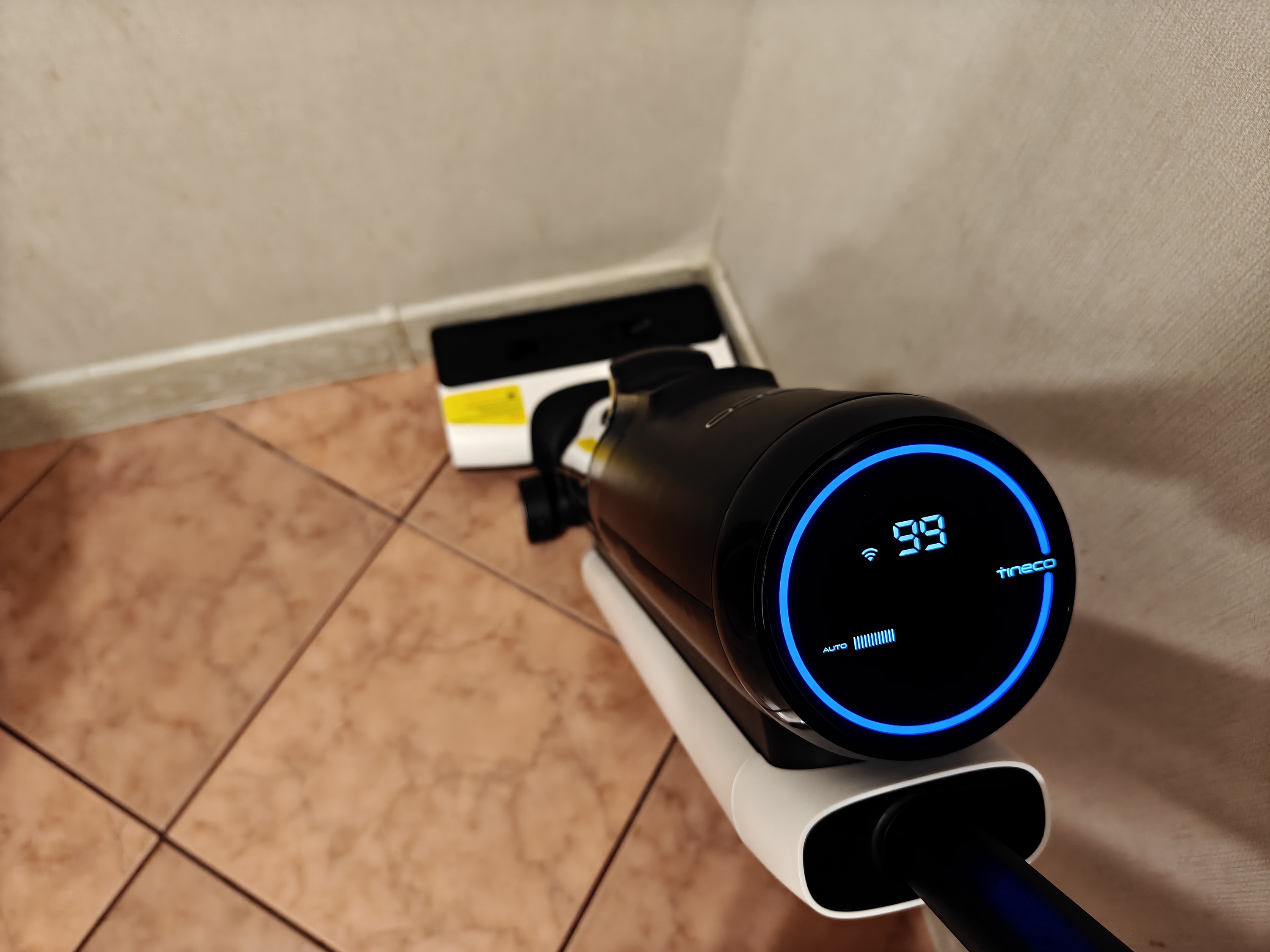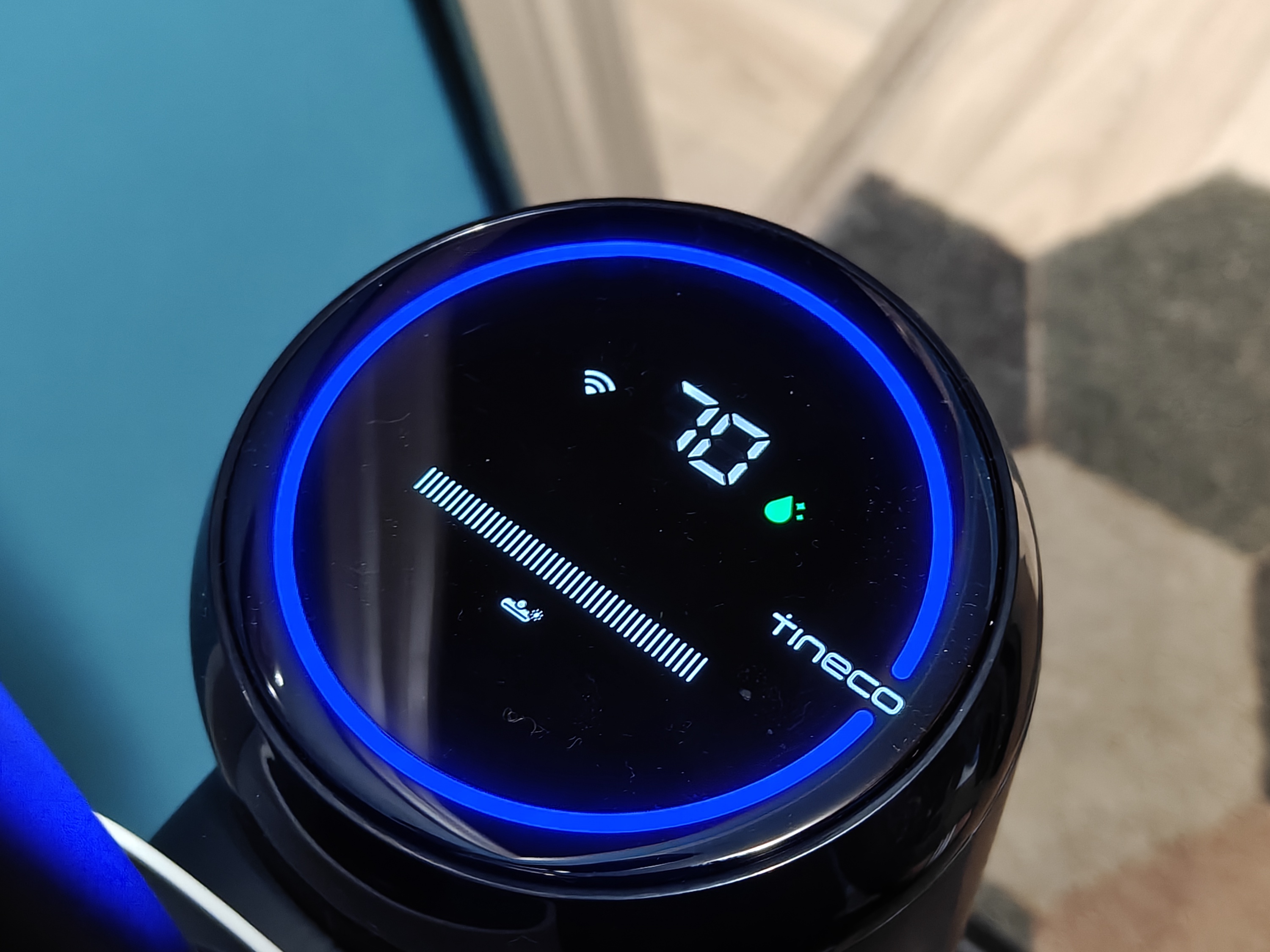Самое главное, что на нем в режиме реального времени отображается заряд аккумулятора - почти как в футуристических шутерах количество патронов в магазине. С наглядной индикацией разряд батареи никогда не станет внезапным, и можно понятно рассчитать время на уборку.