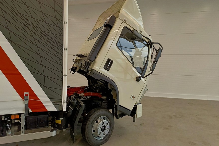 Как и положено, автомобиль адаптировали под российские условия эксплуатации. Кабины машин для нашего рынка имеют лакокрасочное покрытие с толщиной, увеличенной до 110-120 мкм. Они получили дополнительное утепление и шумоизоляцию: под днищем над двигателем размещен специальный кожух из плотного материала с отражающим слоем. А находящиеся рядом колесные арки покрыты антикором.