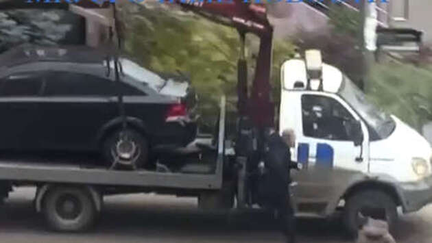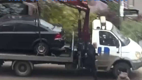 В Подмосковье сняли на видео мужчину, который бросился догонять эвакуатор с авто
