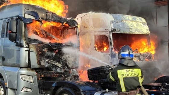 Около полудня 5 ноября на автостоянке на Калужском шоссе в Медыни произошел серьезный пожар. Сначала воспламенился тягач Ford F-MAX, затем огонь перекинулся на стоявший рядом тягач Sitrak. Как сообщили «Калуге 24» в Главном управлении МЧС России по Калужской области, у обоих грузовиков огнем уничтожены все сгораемые конструкции кабин. Еще у двух тягачей, DAF и BeiBen, обгорели задние колеса и бамперы. Пострадали также четыре легковушки. У Honda Civik и Mitsubishi Outlander обгорели задние фары и пластиковые элементы кузова. У Peugeot 408 лопнуло лобовое стекло, обгорели фары и бампер, у ВАЗ 2105 — решетка радиатора. Два тягача и четыре легковушки общей стоимостью 15 миллионов рублей пожарным удалось отстоять. Люди не пострадали, причина возгорания, ущерб и наличие страховки уточняются.