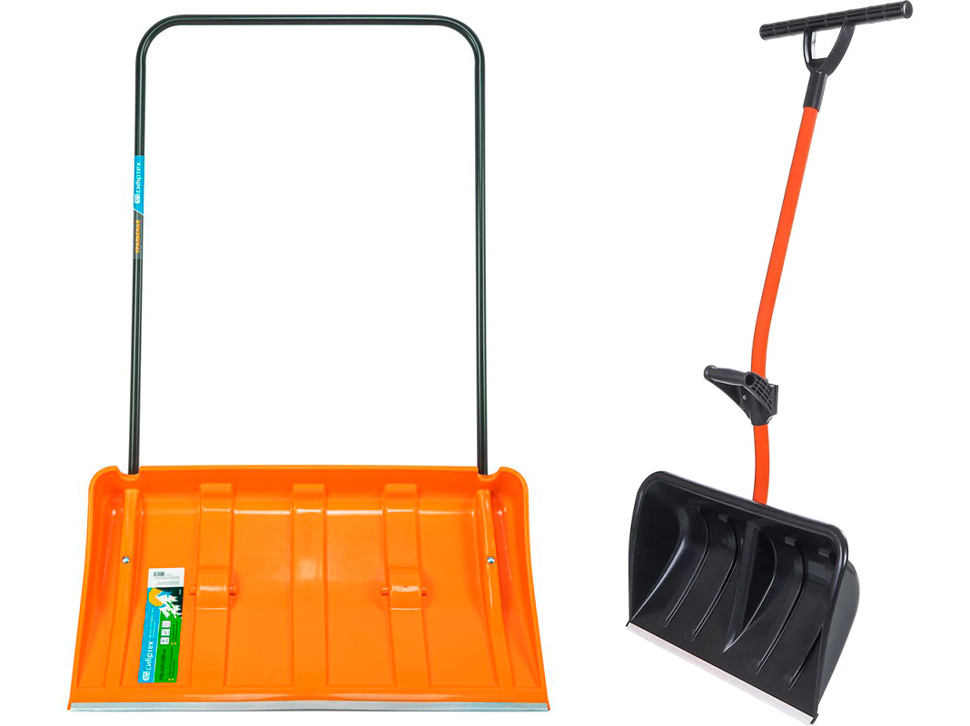 Эти инструменты не поднимают, а сдвигают снег, что экономит силы при уборке больших площадей.