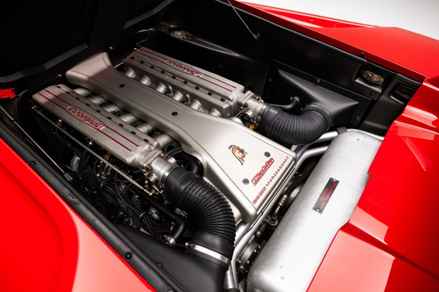Этот экземпляр окрашен в красный, оснащён вентилируемой крышкой моторного отсека, выдвижными фарами, дверями типа «ножницы», противотуманками и четырьмя выпускными патрубками.