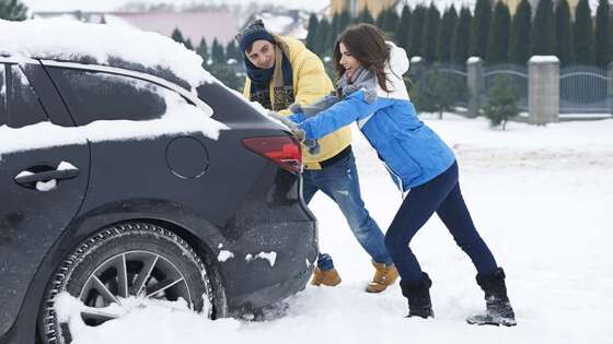 Сильный снегопад может в мгновение ока поставить в тупик даже опытного водителя, когда машина беспомощно буксует, зарывшись в снег.