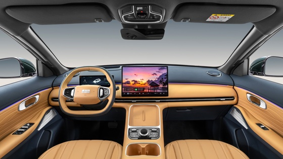 Салон оформлен в модном и лаконичном ключе. Это тот случай, когда физические кнопки - в дефиците, а за управление бортовой электроникой отвечает большой тачскрин. В случае EX5 EM-i - это горизонтально ориентированный дисплей на 15,4 дюйма. Он может похвастаться быстродействием, отличным откликом на нажатия и свайпы, а также качественной, высокодетализированной картинкой, в том числе - системы кругового обзора с многочисленными ракурсами. Важно также, что смартфоны отзеркаливаются на большом "табло" с помощью беспроводного CarPlay. Для Android, правда, такой функции нет, для этого предлагается проводной протокол CarbitLink.