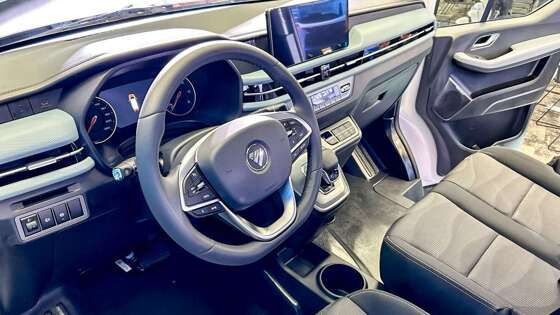 На водительском месте – почти легковая обстановка. Приятный современный дизайн, продуманная эргономика. Руль регулируется в двух плоскостях, сиденье с откидным подлокотником – в трех. Обзорность хороша – спасибо двухсоставным боковым зеркалам и системе кругового обзора (опция).