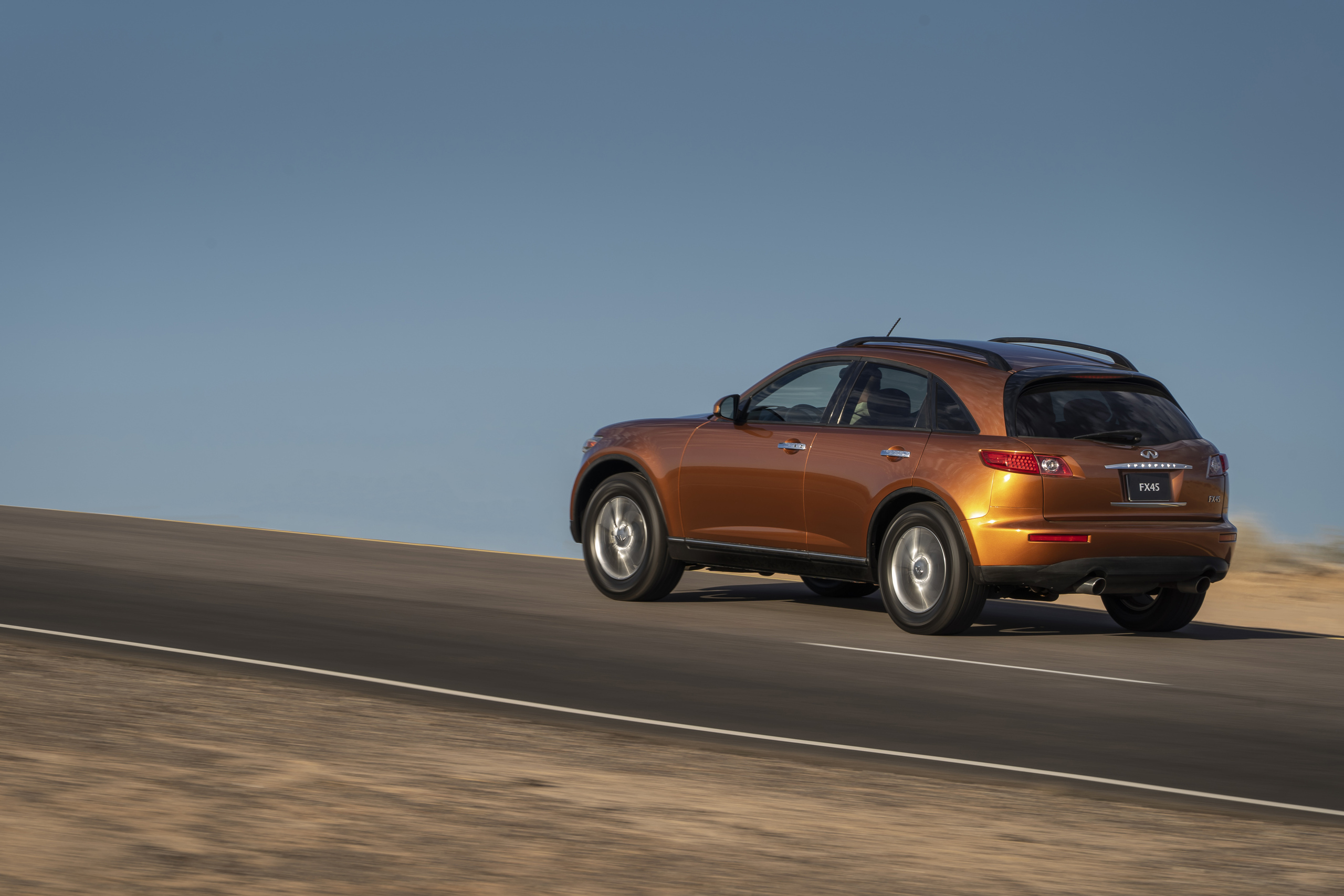 Дебютировавший в 2003 году кроссовер Infiniti FX выгодно выделялся на фоне конкурентов необычным дизайном и платформой от спортседана. Благодаря длинному капоту и покатой крыше этот кроссовер до сих пор выглядит как концепт-кар, который по недосмотру запустили в серийное производство.