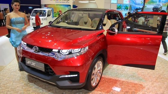 В рамках международного индонезийского автосалона GIIAS-2015 японская компания Daihatsu Motor Company официально представила концептуальный компактный внедорожник Daihatsu FX Concept . Прототип получил современный стильный дизайн и считается предвестником нового серийного SUV популярного B-сегмента. Стоит напомнить, что японская марка Daihatsu не очень хорошо известна автолюбителям США и Европы, но, компания успешно реализует свои автомобили на многих рынках азиатского региона. На проходящем в эти дни индонезийском автосалоне Gaikindo Indonesia International Auto Show (GIIAS-2015) японская марка представила два концептуальных внедорожника — FX Concept и FT Concept. Сегодня мы поговорим о небольшом, компактном кроссе Daihatsu FX Concept . Хотя концепция Daihatsu FX Concept имеет многочисленные футуристические элементы, включая распашные двери, светотехнику, четыре отдельных кресла, полностью цифровой интерфейс, автомобиль выглядит вполне готовым встать на конвейер. Если это всё-таки случиться, внедорожник Daihatsu FX может стать угрозой для многих автомобилей сегмента, а особенно для Honda HR-V в регионе. Концептуальный кросс Daihatsu FX Concept имеет следующие габаритные размеры: длина – 3800 мм, ширина – 1690 мм, высота – 1580 мм. Колёсная база – 2455 мм. По всем параметрам новинка уступает Honda HR-V. Имея указанные размеры, серийная новинка может составить конкуренцию Renault Kwid, Ford EcoSport, Renault Captur и так далее. Ещё раз отметим, концепция Daihatsu FX Concept получила современный, стильный внешний вид, элегантные светодиодные фары, светодиодные ДХО, оригинальную решётку радиатора, трапециевидную нижнюю решетку, аккуратную хромированную отделку и дополнительную пластиковую защиту кузова. В задней части концептуального компактного внедорожника Daihatsu FX Concept можно обнаружить светодиодные габаритные огни, такую же аккуратную хромированную отделку, вертикальные выхлопные трубы и защитную пластину. Интерьер японской новинки яркий и футуристический, поскольку в салоне автомобиля можно увидеть двухуровневую приборную панель и большой интерактивный дисплей в центре приборной панели. Официальные представители японской компании Daihatsu Motor Company были крайне скромны в разговорах о техническом оснащении концепта FX Concept. Сейчас известно, что прототип оснащается 1,2-литровым двигателем, который приводит в движение задние колёса. Конечно, Daihatsu FX Concept – это шоу-кар, но «с прицелом» на будущие серийные автомобили.