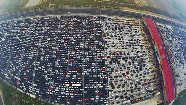 В социальных сетях набирают популярность фотографии гигантской пробки из нескольких тысяч автомобилей, которая образовалась на одном из пропускных пунктов на трассе, ведущей из Макао в Пекин. Изображение небывалого затора, сделанное с воздуха (по всей видимости, с использованием фотографирующего беспилотника) уже опубликовали такие издания, как Mashable, Daily Mail и многие другие. Отмечается, что дорога, на которой образовалась автомобильная пробка, насчитывает пять десятков полос для движения машин. Образование столь серьезного затора аналитики связывают с массовым возвращением жителей Пекина домой после минувших праздников.