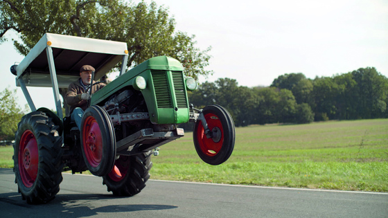 Крупнейшая немецкая сеть супермаркетов Edeka Group опубликовала видеоролик с участием 425-сильного трактора, который дрифтит и объезжает различные препятствия в стиле джимханы Кена Блока. В видео участвовал модернизированный трактор Ferguson 1954 года выпуска. За неделю с момента появления ролик собрал на YouTube более 1,7 миллиона просмотров. Целью рекламного ролика было показать, насколько быстро свежие продукты доставляются в магазины компании. В апреле этого года финны установили на тракторе Valtra T234 мировой рекорд скорости. Под управлением четырехкратного чемпиона мира по ралли Юхи Канккунена трактор разогнался до 130,165 километра в час.