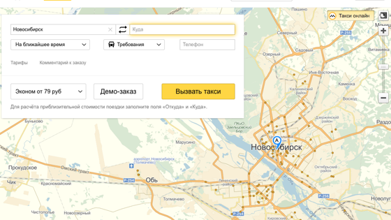 Мы уже писали о запуске в Новосибирске онлайн-сервиса по вызову такси Uber. Одновременно с Uber в Новосибирске заработал и его конкурент — Яндекс.Такси. Отметим, Новосибирск стал первым сибирским городом, где стало доступно Яндекс.Такси. Яндекс.Такси позволяет сделать заказ как через сайт taxi.yandex.ru, так и через мобильное приложение. Оплата допускается картой или наличными. На данный момент с сервисом сотрудничают таксопарки «Гранд Авто» и РНИЦ, всего доступно порядка 150 автомобилей. Предусмотрены тарифы Эконом» (посадка — 79 руб., 16 руб/км), «Комфорт» (195 руб. за первые 2 км, далее 17 руб/км) и «Бизнес» (395 руб. за первые 2 км, далее 25 руб/км). Яндекс.Такси уже работает в Москве, Санкт-Петербурге, Екатеринбурге, Сочи и ряде других городов.