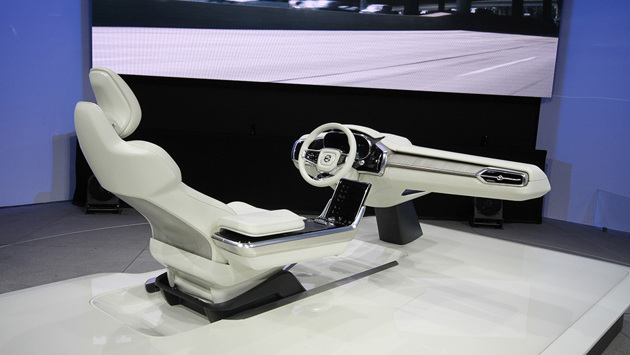 Компания Volvo разработала концептуальный интерьер, предназначенный для машин с системами автономного управления. Прототип, получивший название Concept 26 (26 указывает на количество минут, которые автомобилисты в среднем тратят на путь из дома на работу), дебютировал на моторшоу в Лос-Анджелесе.Ключевой деталью интерьера автомобилей-беспилотников, по мнению Volvo, является водительское кресло. У Concept26 сиденье имеет три предустановленных положения: Drive, Create и Relax. В первом случае кресло стоит в удобном для вождения положении. Во втором сиденье отодвигается чуть назад, у него откидывается спинка, руль сдвигается к приборной панели, а из двери выезжает небольшой столик.В положении Relax кресло водителя фактически раскладывается в кровать, а из его нижней части выезжает подставка для ног. При этом к водителю подвигается экран мультимедийной системы, закрепленный не на центральной консоли, а на кромке подлокотника между передними сиденьями.Плюс ко всему, в Concept26 установлен большой экран, спрятанный в нижней правой части центральной консоли. По желанию водителя, этот сегмент интерьера поворачивается вокруг вертикальной оси, меняя традиционный пустой сегмент салона на дисплей. Его размер в Volvo не сообщили. Когда подобный интерьер может появиться на серийных автомобилях компании Volvo, неизвестно.Ранее шведы показали интерфейс IntelliSafe Auto Pilot для будущих автомобилей с автопилотом. При помощи него, водитель сможет получить данные о возможности активации системы автономного управления. Включается беспилотный режим подрулевыми лепестками.