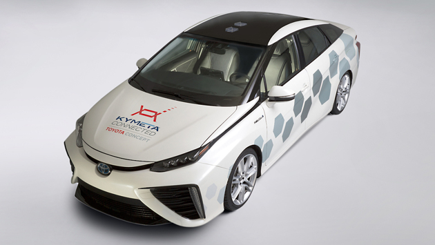 Компания Toyota представила на Детройтском автосалоне особый водородный седан Mirai, подготовленный в сотрудничестве с компанией Kymeta, американским разработчиком спутниковых антенн. Автомобиль оснастили специальной антенной, вмонтированной в крышу. От других спутниковых антенн, поясняют в Toyota, такая конструкция отличается сверхвысокой скоростью передачи данных. В компании полагают, что в будущем такие машины смогут использовать для обеспечения связи, например, при ликвидации техногенных и природных катастроф.Зачем в салоне автомобиля установлены несколько экранов (на которые, как видно на фотографии, транслируется инфракрасное изображение пассажиров), «Тойота» не пояснила. Сообщается лишь, что машина оснащена мощным компьютером и представляет собой мобильный дата-центр.Сотрудничество между Toyota в области разработки мощного плоского автомобильного спутника началось в 2013 году. В январе 2016 года японская марка выделила американской фирме пять миллионов долларов на развитие этой технологии.Модель Mirai была представлена в ноябре 2014 года. Автомобиль оснащен 153-сильной установкой на топливных ячейках, которая получает энергию в ходе химической реакции между водородом и кислородом. Максимальный запас хода составляет 480 километров, полная заправка машины занимает пять минут.В США Toyota Mirai продается по цене от 57 тысяч 500 долларов. В Японии седан стоит минимум 7 миллионов 236 тысяч иен (61 тысячу 180 долларов).