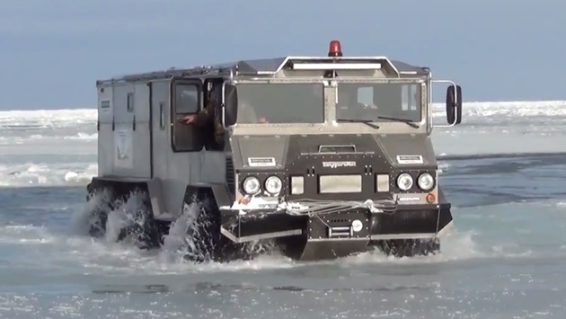 Российский вездеход— амфибия «Бурлак», созданный для автономного покорения Северного полюса в 2018 году, успешно прошел испытания в Карском море и на Приполярном Урале (Ямало-Ненецкий автономный округ). Участники экспедиции преодолели маршрут протяженностью 2,8 тыс. км почти на неделю быстрее, чем планировалось. Об этом во вторник сообщили организаторы экспедиции. "Вездеход-амфибия успешно прошел испытания, которые включали в себя пробег по труднопроходимой местности на дистанции 2,8 тыс. км, а также передвижение по льду и воде Карского моря. Несмотря на рекордное количество снега в Уральских горах, глубина которого достигала 5 метров, машина показала отличную проходимость", — сказали организаторы. При этом весь маршрут был преодолен за 16 дней вместо планируемых трех недель, максимальная скорость, которую развивал вездеход в тундре, — 40 км/час. «Водные испытания проходили на Байдарацкой губе (Карское море). Мы протестировали способность вездехода держаться на плаву, маневрировать и выбираться на берег. По льдам и воде вездеход преодолел около 120 км и самостоятельно выехал на берег в устье реки Хохорейтосё — четырехтонный вездеход смог удержаться на льду толщиной 40 см», — добавили организаторы. Машина специально сконструирована для установления нового мирового рекорда — покорения Северного полюса на колесных автомобилях в автономном режиме, которое запланировано на 2018 год. Разработчики планируют построить второй подобный вездеход, чтобы в 2017 году обе машины дошли до точки старта экспедиции — полярной станции на архипелаге Северная Земля, а в следующем сезоне будет предпринята попытка штурма Северного полюса. "Бурлак" — машина, которая не имеет аналогов в мире. Шестиколесный автомобиль-амфибия разработан по концепции БТР-60, диаметр его колес — почти 2 метра. Герметичная конструкция корпуса и наличие гребного винта позволяют машине держаться на воде и маневрировать среди разломов льда. Идея автомобильной трансарктической экспедиции принадлежит одному из создателей вездехода Алексею Макарову. «Он вдохновился рекордом путешественника Василия Елагина, который в 2009 году первым в мире добрался до полюса на колесных автомобилях „Емеля“. Но те машины были оставлены во льдах, а путешественники вернулись на вертолетах. Алексей решил создать более совершенную машину, чтобы достичь Северного полюса автономно, без заброски авиацией топлива и продуктов питания, и вернуться на материк своим ходом», — рассказывают организаторы экспедиции.