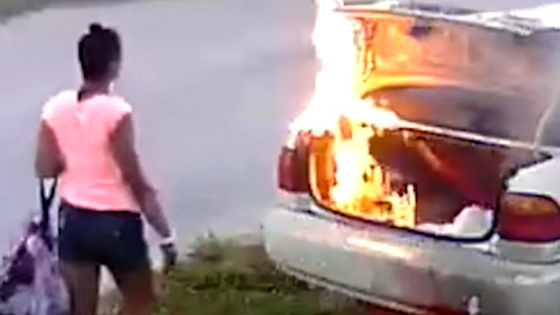 В городе Клируотер (штат Флорида) жаждавшая мести женщина решила сжечь машину бывшего, но ошиблась автомобилем. Видео с порчей чужого имущества, снятое камерами наблюдения, появилось на странице в Facebook местного полицейского департамента. На записи видно, как девушка разводит огонь в багажнике припаркованной на газоне Honda. После задержания 19-летняя Кармен Шамбли рассказала полиции, что считала машину собственностью своего бывшего бойфренда. Против нее было выдвинуто обвинение в поджоге. Кому на самом деле принадлежал испорченный автомобиль, не уточняется.