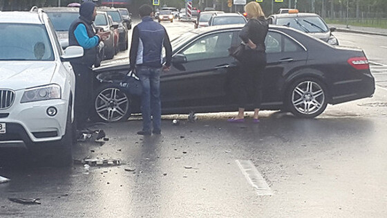 В Санкт-Петербурге при развороте через две сплошные Mercedes протаранил такси