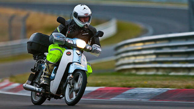 Житель Южной Кореи Чже Ён Ли проехал на своем 8-сильном мотороллере Honda SuperCub 18 тысяч километров ради поездки по «Северной петле» Нюрбургринга. Он стартовал из Сеула и потратил на путешествие 100 дней. Об этом пишет Bridge to Gantry. Скутер Чже Ён Ли оснащен двигателем объемом 110 кубических сантиметров, а полного бака хватает лишь на 150 километров. Багаж путешественника весил 45 килограммов. На некоторых дорогах он мог разгонять мотороллер до максимальных 120 километров в час. Путешественник проехал по «Северной петле» сначала на «Ринг-такси», в роли которого выступил «заряженный» хэтчбек Seat Leon Cupra, а затем сделал круг по трассе на своем мотороллере.