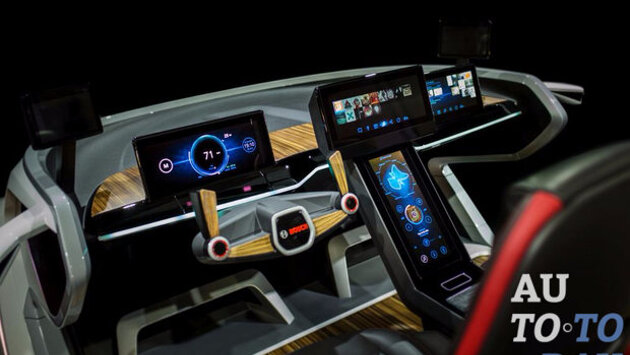 Так же, как и в прошлом году, Bosch представил впечатляющий концепт-кар на выставке CES, предложив захватывающий интерьер, груженный передовыми технологиями. Глядя на него, одним из наиболее интересных элементов является отсутствие традиционного рулевого колеса. На его месте находится руль с двумя ручками, отделанный деревом. Из-за отсутствия традиционного обода, водитель получает непрерывный вид на главный экран, который отображает всю жизненно важную информации о транспортном средстве. Самым интересным моментом в этой концепции есть новые технологии, способные распознавать личные предпочтения конкретного водителя. Следовательно, могут быть восстановлены настройки каждого отдельного водителя с помощью специальных запоминающих устройств. Кроме того, авто может настроиться на вашу любимую музыку, регулировать температуру в соответствии с вашими предпочтениями и может обнаружить, если водитель засыпает за рулем и выдавать специальные предупреждения. Еще одной ключевой особенностью концепции являются сенсорные экраны, которые обеспечивают тактильную обратную связь. "Сегодняшние потребители требуют инновационных продуктов и услуг, которые должны быть разработаны все в более короткие сроки", - сказал Вернер Струт, член совета управления компании Bosch. "Мы хотим предложить некоторые продукты и услуги, которые способны помочь водителям получить более индивидуализированные автомобили. Таким образом, мы надеемся, что вносим свой вклад в улучшение качества жизни."