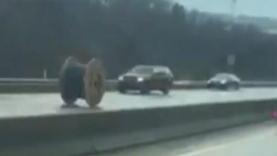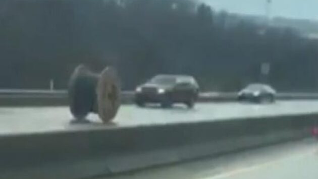 На одном из шоссе в окрестностях американского города Питтсбург гигансткая катушка с кабелем чуть не сбила несколько машин. На кадрах, снятых очевидцем произошедшего Дейвом Коулом и опубликованных в Сети, видно, как катушка, упавшая с грузовика, катится на большой скорости по дороге навстречу автомобилистам. Промчавшись мимо четырех машин, катушка ударилась об ограждение и, наконец, остановилась.