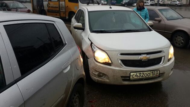 Краснодар. 16 янв. – Новая Кубань. В итоге Chevrolet догнал затормозившую Kia. Авария произошла сегодня утром на пересечении ул. Северной и ул. Ломоносова. Около 9:50 автомобили съезжали с моста. На повороте оборудован регулируемый пешеходный переход. Однако несознательные граждане нарушают ПДД на данном участке дороги. В момент поворота для пешеходов горел красный сигнал светофора, запрещающий их движения. Девушка проигнорировала правила и, как ни в чем не бывало, направилась под колеса поворачивающему Kia Picanto. Очевидно, она и не собиралась смотреть по сторонам, закутавшись в капюшон своей куртки. Находившийся за рулем парень вынужден был экстренно затормозить. В итоге следовавший сзади Chevrolet Cobalt стал виновником аварии. ; У Kia разбиты задняя фара и бампер. Chevrolet досталось в крыло. Из-за его деформации заклинило пассажирскую деверь. Водители остались целы, но возмущены. ; Торопившаяся пешеход, которая явно считает, что всегда права, стала причиной ДТП, в котором временем и деньгами пришлось расплачиваться автолюбителям.