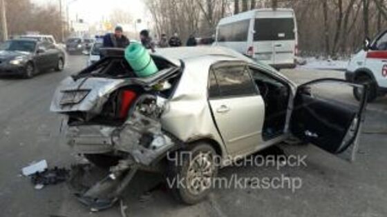 В Красноярске на ул. Грунтовой столкнулись Тойота, КамАЗ и пассажирский микроавтобус. По словам очевидцев, больше всего пострадала иномарка, за рулем которой была 25-летняя девушка. Водителя на «скорой» увезли в больницу. По информации ГИБДД, именно девушка допустила столкновение с грузовиком, после чего автомобиль отбросило на полосу встречного движения, где произошло еще одно столкновение – с микроавтобусом. Полицейские выясняются все обстоятельства. По их данным, в момент аварии в микроавтобусе не было пассажиров.