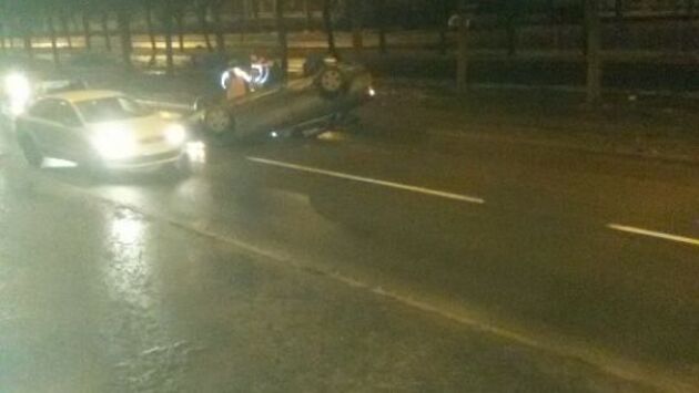 Фото: автомобиль перевернулся после того, как его подрезал лихач