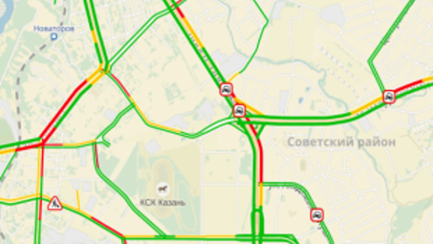 Пробки достигли 5 баллов из-за снегопада, сообщает «Яндекс». В Казани по данным на 8.15 2 февраля затруднено движение по улицам Карла Маркса (7 км/ч), Патриса Лумумбы (7 км/ч), Н. Ершова (10 км/ч), Камалеева (3 км/ч), пр. Победы (10 км/ч), Дубравная (7 км/ч), Баки Урманче (3 км/ч), Оренбургский проезд (напротив дома 1381 - ДТП), Болотникова (ДТП напротив кафе Master Grill). На улицах работает снегоуборочная техника. Напомним, по данным Гидрометцентра РТ, 2 февраля весь день в Татарстане будет идти снег, местами метель. Температура воздуха ночью 9-14 гр. мороза, днем 7-12 гр. мороза. На дорогах гололедица.