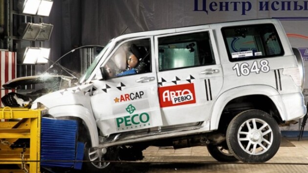 Издание "Авторевю" опубликовало подробные результаты краш-теста обновлённого внедорожника "УАЗ Патриот". Краш-тест прошёл в рамках программы испытаний пассивной безопасности ARCAP, проводимой "Авторевю" в течение нескольких лет. Методика стандартная: фронтальный удар о деформируемый барьер с 40-процентным перекрытием на скорости 64 км/ч. После первого краш-теста, в результате которого у "Патриота" была сильно деформирована нижняя часть кузова в зоне ног водителя, а руль с подушкой безопасности опасно запрокинули голову манекена, Ульяновский автозавод обратился к "Авторевю" с просьбой провести повторное испытание. Причиной для этого стало несоответствие высоты опорной плиты несминаемого барьера нормативным требованиям. После повторного удара рама машины сломалась ещё сильнее, чем в первый раз, переднее левое колесо сильно деформировало пол, водительская дверь сместилась назад и заблокировалась, заметно уехали назад и педали. А самый серьёзный урон манекену нанёс руль, который через подушку безопасности буквально сломал шею "водителю". По итогам краш-теста обновлённый "УАЗ Патриот" набрал 5,3 балла из 16 возможных, что соответствует одной звезде рейтинга из четырёх. Как отмечает "Авторевю", основными причинами для такого результата стали конструкция рамы и рулевой колонки, а также 18-дюймовые колёса на тестовом автомобиле — с 16-дюймовыми колёсами базовой комплектации деформация кузова была бы не такой сильной. Как правило тяжёлые рамные внедорожники хуже справляются с фронтальным ударом о неподвижное препятствие (такое испытание примерно моделирует лобовое столкновение с автомобилем той же массы), однако в реальных условиях при столкновениях с более лёгкими машинами "Патриот" и ему подобные автомобили уже имеют преимущество и страдают не так сильно.