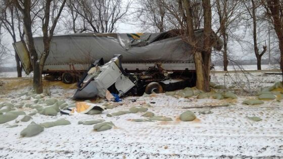 Краснодар. 8 фев. – Новая Кубань. ДТП произошло вчера в районе 5 вечера. «МАЗ 54323» с полуприцепом двигался по трассе Кущевская – Кугоейская – Сиротино. 47-летний водитель решил полихачить. Невзирая на погодные условия, мужчина переборщил с педалью газа. Большегруз полетел в кювет, где начал «собирать» деревья. От мощного удара у МАЗ оторвало кабину. Крове водителя в салоне находился 40-летний пассажир. По данным УГИБДД ГУ МВД России по Краснодарскому краю, оба попали в больницу с травмами. Краевая Госавтоинспекция напоминает, что погодные условия существенно влияют на безопасность дорожного движения. Водителей просят следить за дорожной обстановкой, менять манеру езды в условиях гололеда, наледи, снежного покрова.