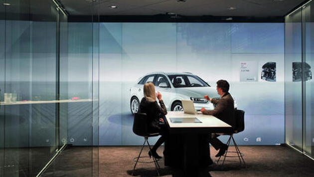 Дилерские центры и автомобили «в наличии» — это куча занятого места, дополнительный (и далеко не всегда хорошо обученный) персонал и всего-то десяток-другой машин на выбор. Устаревший и не слишком эффективный подход, не правда ли? Но если представить, что дилеры могут загрузить конфигуратор практически в мозг клиента, дать ему время поиграться с конструктором и выбрать тот самый автомобиль. Когда такое может случиться? На самом деле, очень и очень скоро: «Мотор» рассказывает о шоу-румах ближайшего будущего. Плоды экспериментов компании «Ауди» с созданием шоу-румов нового поколения появились еще в 2012 году. Тогда фирма открыла в Лондоне первый цифровой шоу-рум Audi City. Для него не требуется огромная площадь и многоэтажная парковка выставочных образцов машин — только дисплей. И еще один, побольше. Речь не шла о полноценном конфигураторе, которые мы привыкли видеть на официальных сайтах компаний. Но все модели марки, представленные на рынке, можно было тщательно изучить на экране, рассматривая с помощью тачскрина их трехмерное изображение. Таким образом, можно было полюбоваться на машину в любом интересующем цвете и даже заглянуть в салон с определенным вариантом отделки. Параллельно с этим предлагалось изучить технические подробности, а дальше можно было обсудить с сотрудником автоцентра итоговую комлектацию автомобиля. Меньше персонала, меньше площади, меньше сложностей. Кстати, цифровой шоу-рум Audi есть и в России — в Москве, где есть салон, оснащенный огромными экранами для знакомства с машинами в масштабе 1 к 1. В 2015 году «Ауди» пошла дальше и анонсировала запуск пилотной маркетинговой программы VR experience. Она предусматривает наличие в дилерских центрах очков виртуальной реальности. Сперва клиент «собирает» в конфигураторе понравившуюся машину, а затем, с помощью этих самых очков, детально изучает трехмерную модель получившегося автомобиля снаружи и внутри. Модель настолько проработана, что позволяет, например, с помощью наушников послушать звук закрывающейся двери. Ну, а в 2016-м компания представила подробный VR-тур по всем своим автомобилям, позволяющий заглянуть внутрь автомобиля в прямом смысле — сквозь кузовные панели, элементы интерьера — прямо в конструкцию. Компания JLR известна своими идеями в области технологий дополненной реальности: мы уже видели презентацию «прозрачного» капота для внедорожников Land Rover и лобового стекла, на которое в режиме реального времени выводятся предупреждения систем безопасности или, например, инструкции навигатора. Конечно, технологии виртуальной реальности британцы тоже не обошли стороной. В 2016 году на презентации концепта I-Pace компания устроила масштабное виртуальное знакомство с предвестником электрического кроссовера. Гости мероприятия смогли оценить его снаружи в статике и динамике, а также посидеть внутри и осмотреться в салоне. А в 2017-м британская компания собирается запустить программу Virtual Reality Experience, суть которой, чего уж там, сильно напоминает идею «Ауди». В дилерских центрах JLR появятся очки виртуальной реальности, с помощью которых клиенты смогут познакомиться с моделями машин в натуральную величину в мельчайших деталях. Самое крутое в том, что дилерам теперь не нужно дожидаться поступления в салоны реальных автомобилей — они смогут предложить потенциальным клиен