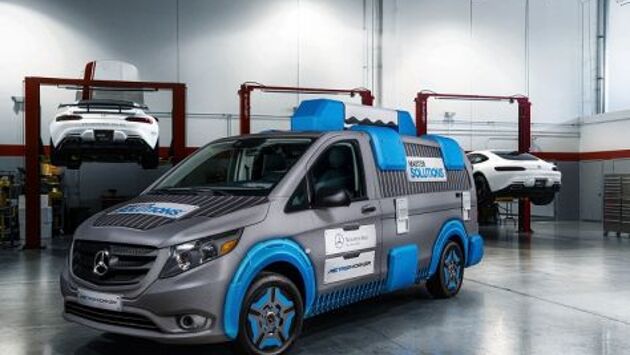 Mercedes-Benz Metris MasterSolutions Toolbox - так назвали свой проект в RENNtech, превратив обычный фургон в стеллаж на колёсах. Все работы вёл авторитетный по обе стороны океана тюнер RENNtech. В результате стандартный фургон Mercedes-Benz превратили в концепт, грузовое пространство которого организовали по-немецки удобно и функционально. Всюду вы обнаруживаете разнообразные ящички, полочки. Необычное авто презентовали в рамках Chicago Auto Show. Естественно, что тематика бокса для хранения рабочих приспособлений должна была хоть как-то отразиться и во внешнем облике. Именно потому кузов грузового вэна обшили пластиковыми накладками, имитирующими корпус ящика для инструментов, а на крыше разместили огромное подобие ручки для переноски. В движение автомобиль приводится 2,0-литровым мотором турбо в 208 лошадиных сил. Коробка передач - 7-ступенчатый «автомат». На возможность серийного производства Mercedes-Benz Metris MasterSolutions Toolbox немцы пока даже и не намекали. Напомним, что Mercedes-Benz Metris - американский аналог европейского Vito.