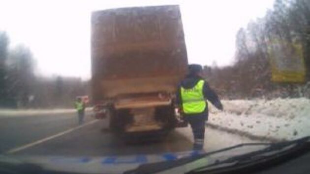 Под Вологдой «гаишники» тушили загоревшийся грузовик