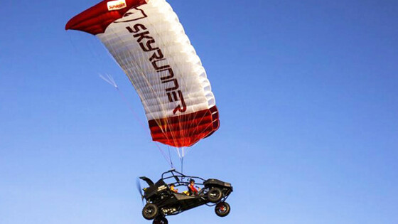Сейчас разработкой летающих автомобилей занимаются ряд компаний. Предполагается, что такие транспортные средства, будучи сертифицированными для полетов на небольшие расстояния и для передвижения по автодорогам, позволят повысить свободу перемещения и разгрузить трассы. Новый летающий внедорожник SkyRunner предназначен для сертифицированных пилотов-спортсменов и внешне напоминает багги. Он оснащен углепластиковым корпусом и парапланом, который складывается в специальный отсек. Машина оборудована двумя двигателями: Rotax 914UL и Polaris. Для взлета транспортному средству необходим участок длиной 137 метров. В воздухе SkyRunner может развивать скорость до 66 километров в час, дальность полета достигает 220 километров. Стоимость машины составляет 139 тысяч долларов. Созданием аналогичного аппарата в настоящее время занимается французская Vaylon. Ее транспортное средство Pegase Mk.2 разрабатывается для сил специальных операций и также представляет собой багги с толкающим винтом и складным парапланом.