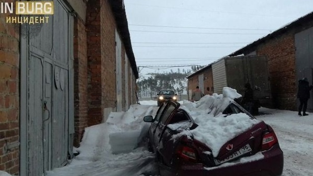Припаркованную у склада. Утром 21 февраля 2017 года в Екатеринбурге снежная глыба с крыши дома №81 по улице Проходной обрушилась на припаркованную рядом Daewoo Nexia. К счастью, в момент происшествия в машине никого не было. "Хозяин, когда увидел, был в шоке. Ничего не мог сказать!" - рассказал "Уралинформбюро" очевидец. Сейчас автовладелец выясняет, кто должен был убирать снег с крыши складского помещения, чтобы предъявить ему счет за покореженный автомобиль.