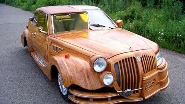 Экстравагантную самоделку сконструировал Василий Лазаренко из украинского города Черновцы. Для этого ему пришлось бросить свою работу и продать два собственных автомобиля, но результат никого не оставил равнодушным. За полтора года инженер собственными усилиями спроектировал и сделал из натуральной древесины кузов, который словно сочетает в себе сразу два автомобиля разных эпох. Донором для «двуликой» машины послужило купе Opel Ascona 1981 года выпуска. За столь впечатляющее достижение журналисты даже окрестили Лазаренко «украинским Папой Карло»! Левая часть машины представляет собой купе, а правая – кабриолет в стиле 1930-х годов. Детали невероятно эклектичного кузова можно рассматривать бесконечно. Вот фара от Audi A4 поколения B6, а вот фонарь от Mercedes-Benz E-класса поколения W210. Бамперы правой половины похожи на подлокотники дивана, как и антикрыло левой половины. Тёмно-зелёный кожаный салон тоже получил щедрую порцию деревянной отделки. Василий утверждает, что кузов «дубового» автомобиля не боится огня, потому что дерево пропитано защитным составом. Теперь эффектная самоделка выставлена на продажу за 50 тысяч долларов как «Опель» (очевидно, автомобиль до сих пор считается таковым по регистрационным документам). Не так уж и дорого за эксклюзив, не так ли?
