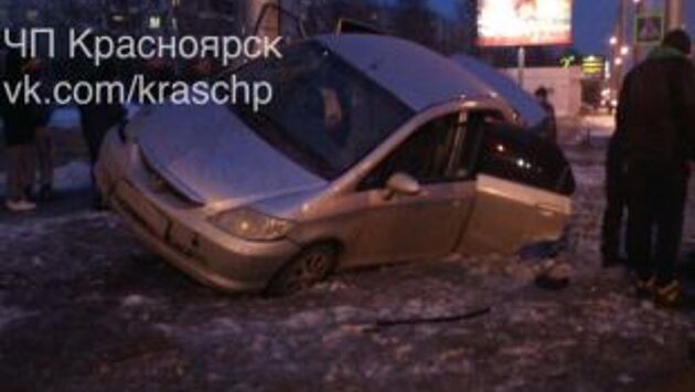 В Красноярске два человека вылетели из «Хонды» при столкновении (видео)