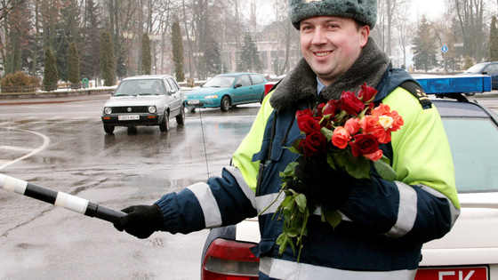 Фото с ресурса grodnonews.by 4 марта МВД России начнёт поздравлять прекрасную половину страны с международным женским днем – об этом сообщила представитель министерства Ирина Волк. Акция называется «8 Марта – в каждый дом». Её цель – сблизить общество и полиции и укрепить отношения между. Наиболее яркой частью акции станет вручение сотрудниками Госавтоинспекции цветов автоледи. «Цветочный патруль» напомнит о правилах дорожного движения на дороге, об опасностях, которые несёт весенняя погода. Ведь подарив символ весны и расположив к себе даму за рулём, ГАИшник не растеряется и сходу объяснит, как внимательно и осторожно следует вести автомобиль. Будут ли при этом составляться протоколы в отношении нарушительниц ПДД, не сообщается.
