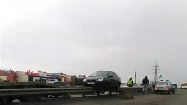 В Самаре напротив ТЦ "Московский" иномарка налетела на дорожное ограждение