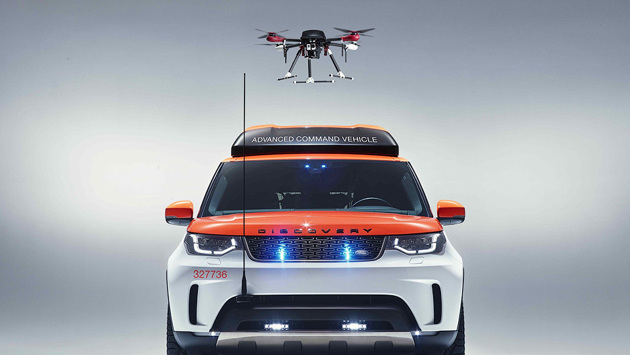 Компания Land Rover представила на Женевском моторшоу специальную модификацию внедорожника Discovery — Project Hero, подготовленную для австрийского Красного Креста. Одной из особенностей автомобиля стал дрон на крыше, который позволяет получить полную картину происшествия с высоты птичьего полета и изучить зону катастрофы с безопасного расстояния. Дрон оснащен активным магнитом, который помогает ему садиться на крышу автомобиля в движении, а также специальной системой центрирования. Изображения с камер квадрокоптера могут сразу же передаваться командам быстрого реагирования в прямом эфире, позволяя им оперативно оценить ситуацию в месте происшествия. Помимо дрона, автомобиль также получил специальную панель с точками для крепления дополнительного оборудования, особые светодиодные фары, розетки, подходящие для различных регионов, многочастотный радиопередатчик и сдвижной пол в багажнике, подходящий как для защиты хранящегося под ним груза, так и в качестве дополнительного рабочего пространства. Автомобиль приводится в движение трехлитровым дизельным двигателем. С июня (и в течение года) этот внедорожник будет базироваться в тренировочном центре австрийского Красного Креста в Эрцберге и в Вене. Дрон будет использоваться во время учений, а сам внедорожник сможет принимать участие в реальных мероприятиях Красного Креста в случае стихийных бедствий.