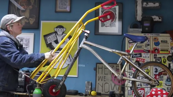 Лора скрестила ручную тележку и велосипед: переднее колесо маленького диаметра с широкой шиной досталось гибриду от тележки, как и подставка и каркас из металлических труб; рама, привод и заднее колесо остались велосипедными. Немного резки по металлу, сварки и покраски - и чудо-байк готов. Как пишет автор творения, "он ездит еще лучше, чем выглядит", а тормоза вполне достаточно для того, чтобы без проблем остановить гибрид на полном ходу, даже если на передней площадке устроился ящик пива. Ранее мы писали о том, как поступила Лора, когда её не устроил фабричный браслет-мультитул: мастер отрезала кончики отвёрток, добавила магнитов, и соединила всё это звеньями велосипедной цепи. Получился браслет-мультитул, отлично сидящий на тонком девичьем запястье. Больше роликов Лоры можно найти на её Youtube-канале.