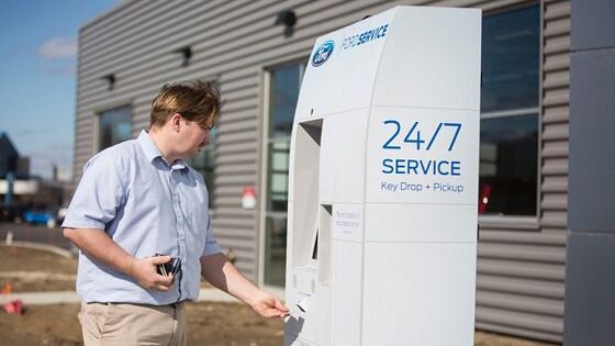 В американском городе Бёрч Ран в штате Мичиган появился первый в мире терминал Smart Service Kiosk, с помощью которого клиенты местного дилерского центра Ford могут отдать свой автомобиль в сервис и забрать его обратно после выполнения всех необходимых работ. Киоск, разработанный японской компанией Panasonic, работает круглосуточно и позволяет без очереди и общения с мастерами-приёмщиками заниматься техобслуживанием. |photo-2| Нужно лишь приехать на автомобиле к терминалу, припарковать его рядом, указать необходимые работы, которые нужно выполнить, оплатить их кредитной картой и оставить ключи от машины. Напоминает валет-паркинг, не так ли? Сначала владелец вводит с помощью сенсорного экрана данные автомобиля, свой телефон и электронную почту, сканирует своё водительское удостоверение и выбирает необходимые сервисные работы. Их можно выбрать из списка, в котором есть, к примеру, регулярное техническое обслуживание, диагностика двигателя, трансмиссии, подвески, тормозов, кондиционера, регулировка сход-развала, замена колодок, аккумулятора, шин, ветрового стекла и многое другое. Впрочем, если ничего из списка не подходит, описать неисправность можно и своими словами. После этого формируется заказ-наряд с суммой ремонта, который оплачивается карточкой. |photo-1| Затем в специальный отсек киоска нужно опустить ключи от автомобиля, после чего генерируется секретный PIN-код, а на электронную почту отправляется письмо с QR-кодом, который также понадобится отсканировать на терминале, чтобы забрать ключи от готовой машины. И никакого «развода» на дополнительные работы или аксессуары! В Ford говорят, что клиенты уже оценили удобство Smart Service Kiosk, так что терминалов скоро станет больше. Это действительно очень удобно и высокотехнологично, но интересно, могут ли взломать киоск с автомобильными ключами хакеры и насколько он защищён от вандалов?