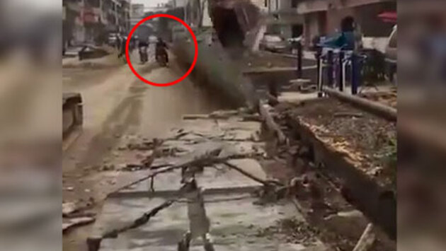 В Сети набирает популярность видео с мотоциклистом, на которого рушится гигантская бетонная стена. ЧП произошло где-то в Китае. Мотоциклист двигался по дороге вдоль стены, которую в это время сносил бульдозер. Бетонная конструкция упала прямо на байкера и за одну долю секунды раздавила его. Судя по кадрам, мотоциклисту выжить не удалось.