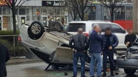 В Краснодаре попавшая в ДТП машина перевернулась на крышу