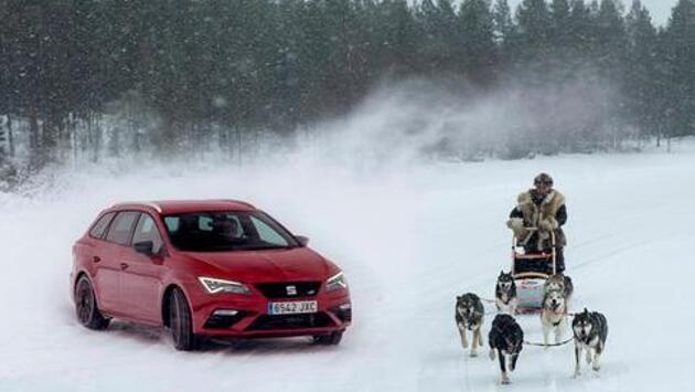 Компания Seat устроила необычное соревнование: хот-хэтч Leon Cupra противопоставили на замерзшем озере в Лапландии шести ездовым хаски. Гонка происходила по импровизированному треку. В заезде принимали участие 300-сильный хэтчбек и шесть аляскинских и сибирских хаски, автомобиль пилотировал испанский гонщик Хорди Жене. Температура на улице во время гонки составляла -5 градусов по Цельсию, тогда как оптимальными условиями для собак считается от -10 до -25 градусов. Leon Cupra, оснащенный двухлитровым турбомотором, разгоняется до «сотни» за 4,9 секунды. Хаски способны на пятидневные путешествия, причем каждая собака может тянуть за собой до 30 килограммов груза. Их максимальная скорость достигает 40 километров в час.
