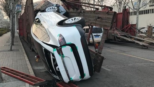 Фура не смогла в целости и сохранности доставить груз. Верхняя платформа не выдержала веса электромобилей, в результате чего они рухнули на землю. Судя по фотографиям с места происшествия, которые опубликовало издание CarNewsChina, как минимум два электрических кроссовера Tesla Model X, которые находились на верхней платформе, получили серьезные повреждения: выбиты стекла, помят кузов. Отметим, что стоимость модели на китайском рынке достигает 1,4 млн юаней – около 203 тысяч долларов. Журналисты подчеркнули, что вес одного кроссовера достигает 2,5 тонны, а китайские автовозы не отличаются особой прочностью.