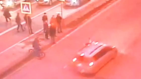 Камера видеонаблюдения сняла, как авто сбило велосипедиста на Алтуфьевском шоссе в Москве