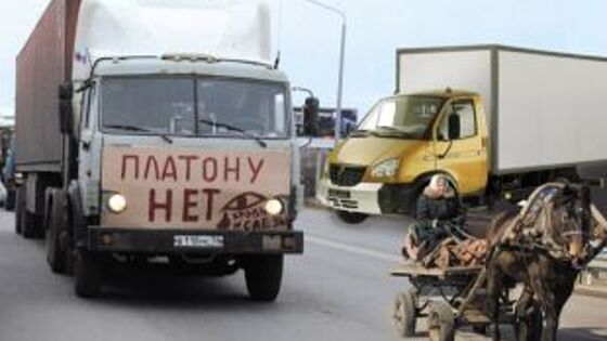 Дальнобойщики начали акцию протеста против «Платона» на Московском шоссе