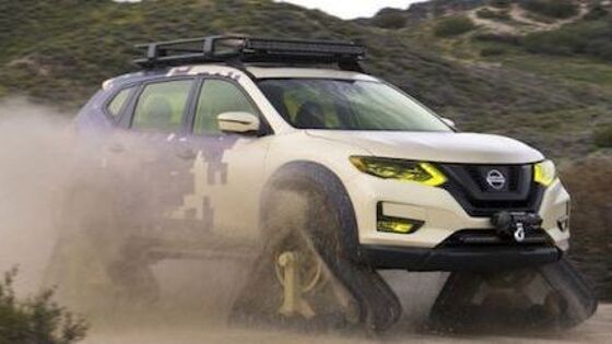 На автомобильной выставке в Нью-Йорке состоялся официальный дебют новой разработки японских инженеров – гусеничного кроссовера X-Trail. Автомобиль получил название Rogue Trail Warrior. Кроссовер оснащен 2,5-литровым двигателем на 170 лошадиных сил, который работает в связке с бесступенчатой коробкой передач. Новинка задействует лебедку, а также светодиодный модуль на крыше. Главным отличием этой модели от всех автомобилей сегмента SUV является использование вместо колес гусениц, длина каждой из которых составляет 122 см, высота – 76 см, а ширина – 38 см. Для того, чтобы оснастить кроссовер Rogue (в России называется X-Trail) гусеницами инженерам компании «Ниссан» пришлось кардинально переработать подвеску этой модели. Автомобиль вряд ли когда-либо появится в продаже серийно. Кроссовер был создан в качестве выставочного образца для автосалона в Нью-Йорке.