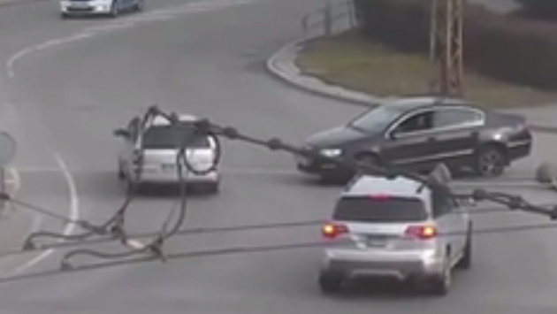 Этот водитель не просто повредил дорожную конструкцию, но долго катался, пытаясь избавиться от ее остатков. А потом устроил подобие побега от полицейских