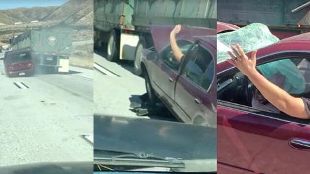 Брайан Стимке опубликовал в Facebook видео необычной ситуации на дороге. Будучи на шоссе, Стимке увидел застрявшую в прицепе грузовика легковушку, которую он тащил за собой по дороге. Когда грузовик остановился, его водитель сказал, что ничего не знал о происходящем. Судя по всему, владелец Nissan Maxima в какой-то момент врезался в прицеп тягача, после чего легковушка буквально застряла в нем. Водитель грузовика якобы этого не заметил и продолжал движение. Еще несколько километров. Когда автор видео приблизился к машинам, то увидел, что человек в «Ниссане» сигнализировал о помощи. После этого Стимке остановил грузовик.