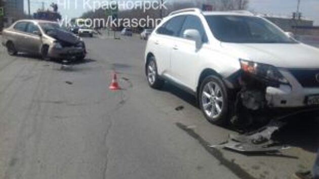 В Красноярске столкнулись Toyota и Lexus с женщиной за рулём